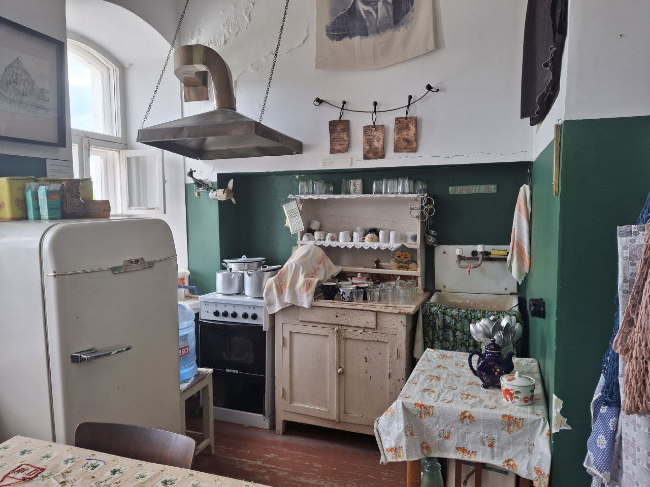 Посетителей музея на коммунальной кухне «шестидесятых» угощают традиционными советскими угощениями: сосисками с горошком, индийским чаем «со слоном» с конфетами и баранками. В летнем музейном меню: мороженое-щербет, напоминающее забытый вкус советского лакомства.