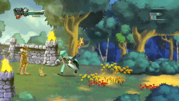 Наше приключение изначально начинается с того, что к нашему главному персонажу по имени Даст (Dust) прилетает меч, точнее лезвие Арах (Blade of Ahrah), вместе с Фиджет (Fidget), хранительницей этого необычного меча. Даст ничего не помнит о своëм прошлом и по ходу игры он вместе с нами узнаëм о его прошлом от других персонажей.