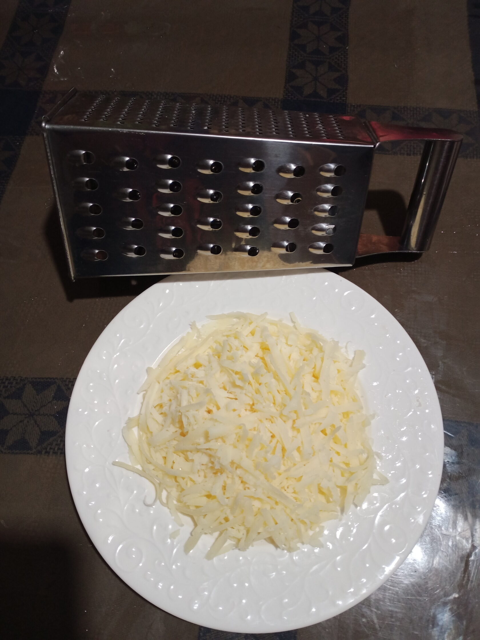 Сыр натираем на тёрке.